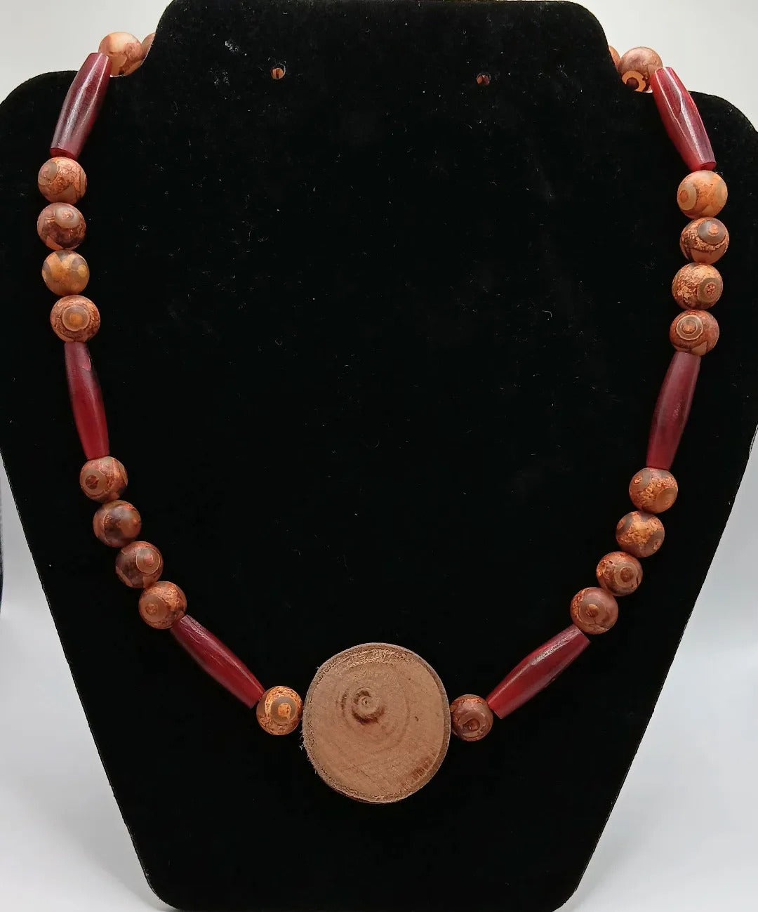 Tibetan Beads with Wood Pendant and magnetic clasp