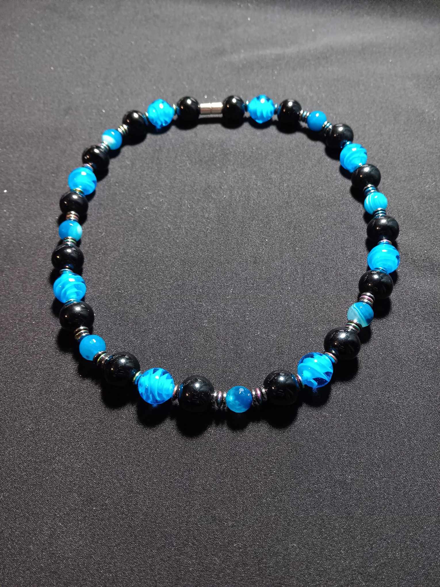 12mm Turquoise and Onyx with Hematite spacers and magnetic closure